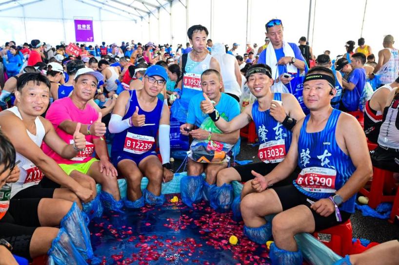 在选手服务方面,哈马再度创新。参赛包中除了号码布、参赛手环、手册等必备物件外,还包含各类融合了“尔滨”元素的美食、饮料、补给品,让选手把参赛记忆带回家。赛事还为选手提供了个性化的赛前训练指导,通过线上课程、线下讲座等形式,提供科学训练建议;同时设立赛后恢复服务区,配备专业康复师,为选手提供拉伸、按摩等恢复服务。