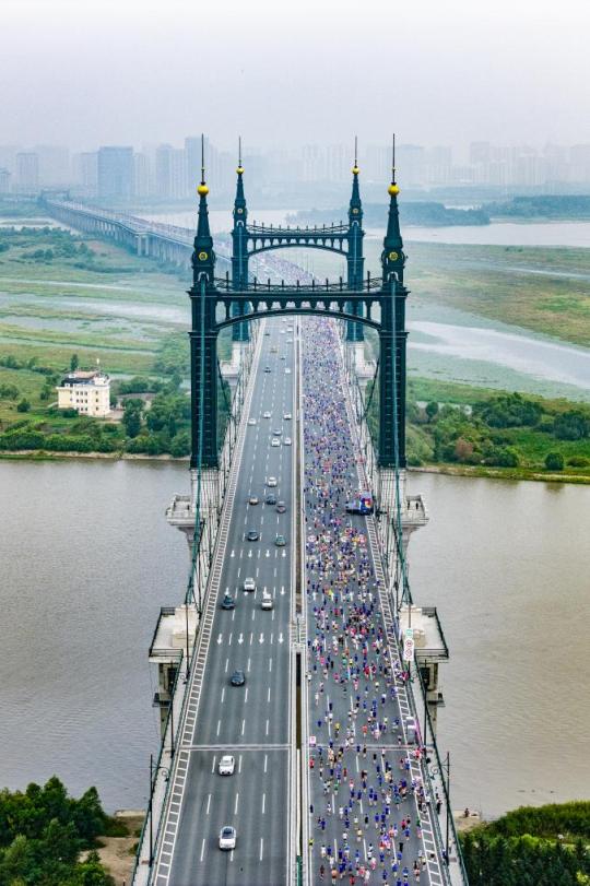 当天清晨的哈尔滨,凉爽宜人。马拉松赛道上,每一处风景都成为跑友们的陪伴。